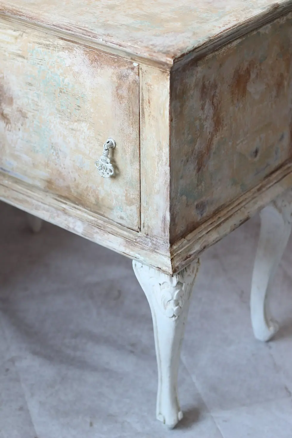 Paire de chevets anciens patiné rose orangé style wabi sabi
